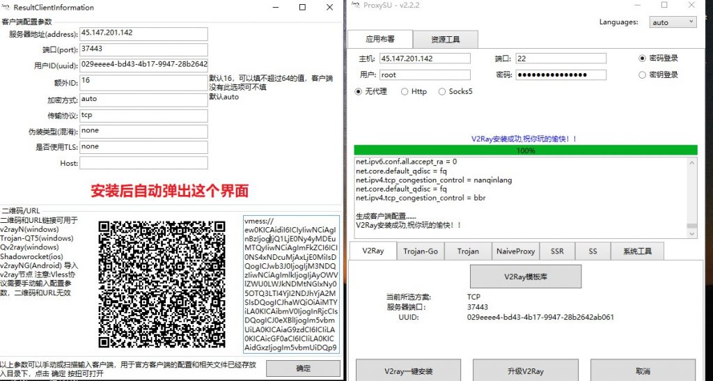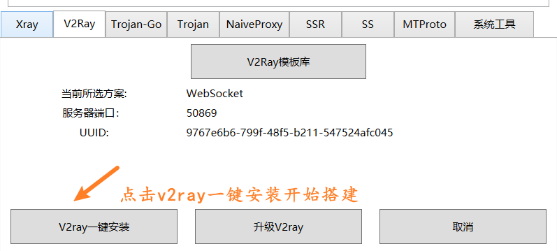 点击v2ray一键安装,软件会自动搭建