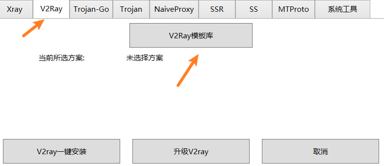 演示2:以搭建v2ray为例,选中v2ray模板库。
