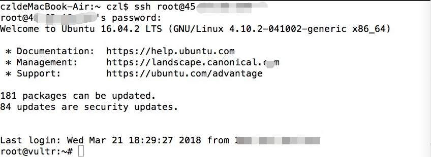 如果你是Mac苹果电脑操作系统,更简单,无需下载xshell,系统可以直接连接VPS。直接打开Terminal终端,输入:ssh [email protected](将45.45.43.21换成你的IP),之后输入你的密码就可以登录了(输入密码的时候屏幕上不会有显示)